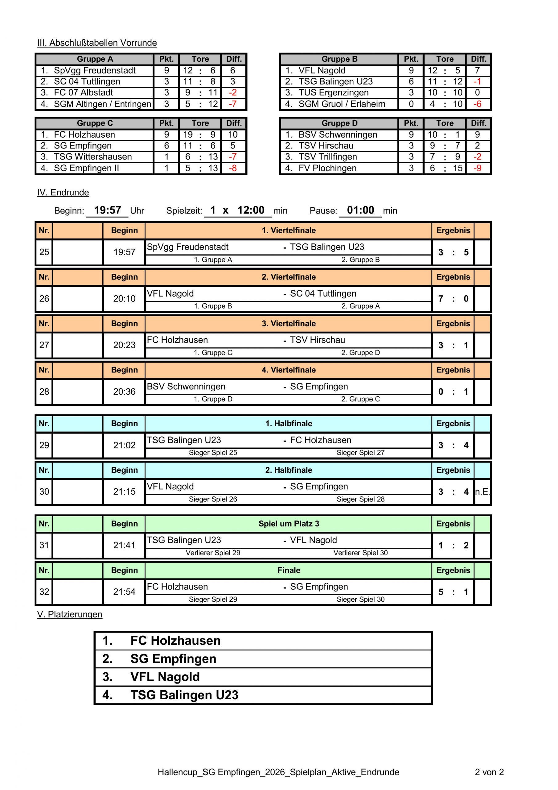 FC 07 Albstadt II wirkte am Dienstag, 13.01.2026 mit, schied als Viertplatzierter der Vorrundengruppe 1 aus.