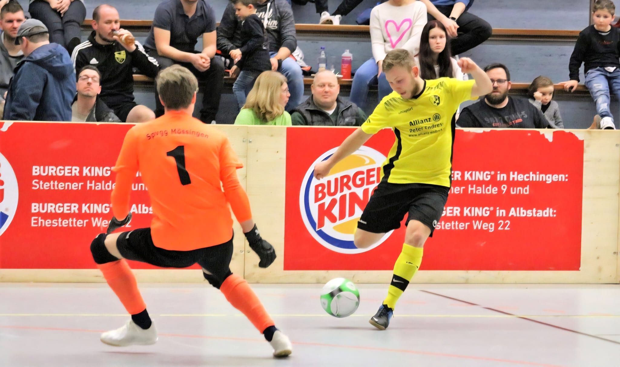 So ein Finale mit solch einer Konstellation gab es in der Albstädter Zollern-Alb-Halle auch noch nie: Gleich zwei Teams aus einer Mannschaft standen sich gegenüber im Duell „Albstadt 1a gegen Albstadt 1b“. Dennoch schenkten sich die Kontrahenten nichts. Armin Hotz brachte Albstadt I früh mit 1:0 in Führung; doch die Albstädter „Zweite“ schlug zurück: Luigi Crincoli besorgte das 1:1. Mit einem satten Distanzschuss brachte Torhüter Didar Muheedeen die Albstädter Erste erneut mit 2:1 nach vorn. Matthias Endriß sorgte dann mit dem 3:1 für die Vorentscheidung. Andreas Hotz verkürzte zwar auf 2:3; aber postwendend stellte Endriß auf 4:2, Nebosja Obradovic gelang zwar noch das 3:4, den Schlusspunkt setzte jedoch h Nicolas Gil-Rodriguez mit dem 5:3-Endstand für Albstadt I.