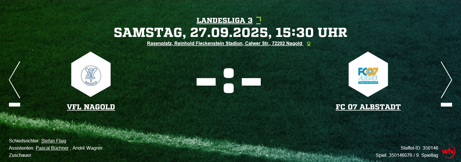 VfL Nagold – FC 07 Albstadt (Samstag, 27.09.2025, 15:30 Uhr, Reinhold- Fleckenstein-Stadion, Nagold). In Serie drei aufeinanderfolgende Niederlagen mussten Albstadts Landesligakicker zuletzt einstecken. Jetzt zielt die Reise der Blau-Weißen zum VfL Nagold. Aber auch der gastgebende Vizemeister und Aufstiegsaspirant schwächelte zuletzt, wartete nach zwei Unentschieden und einer Niederlage, ebenfalls seit drei Spieltagen auf einen eigenen „Dreier“. Der konnte jedoch im Nachholspiel am Mittwochabend durch den 2:3-Auswärtssieg beim BSV 07 Schwenningen erkämpft werden. Welchem der beiden Ex-Verbandsligisten Nagold oder Albstadt gelingt im direkten Duell der Erfolg? „ Wir müssen endlich anfangen, uns für den Aufwand zu belohnen“, gibt Albstadts Übungsleiter Samed Akbaba vor Anpfiff die aufmunternde Parole an sein Team aus.
